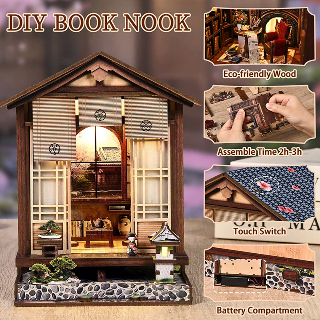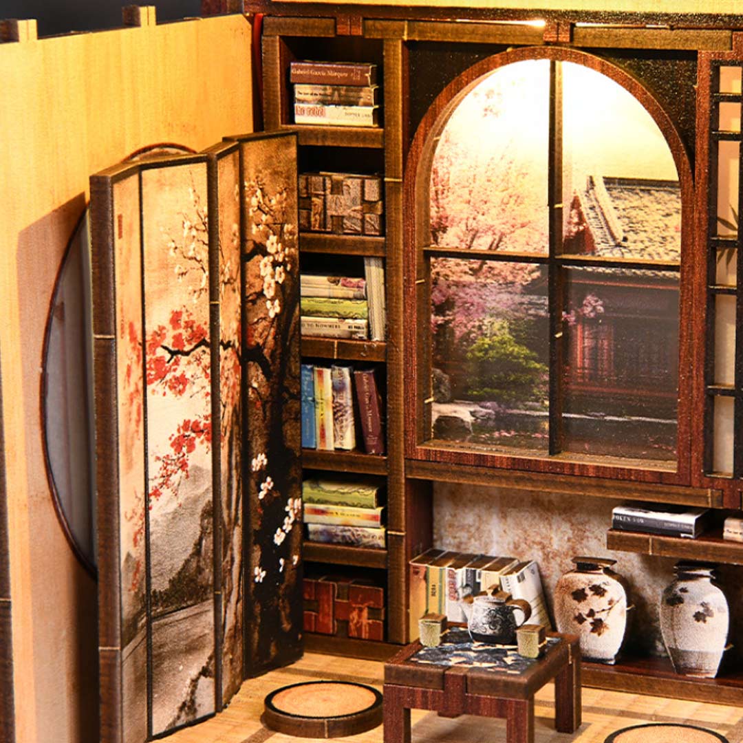 Moss Lantern and Garden DIY Wooden Book Nook Shelf Insert